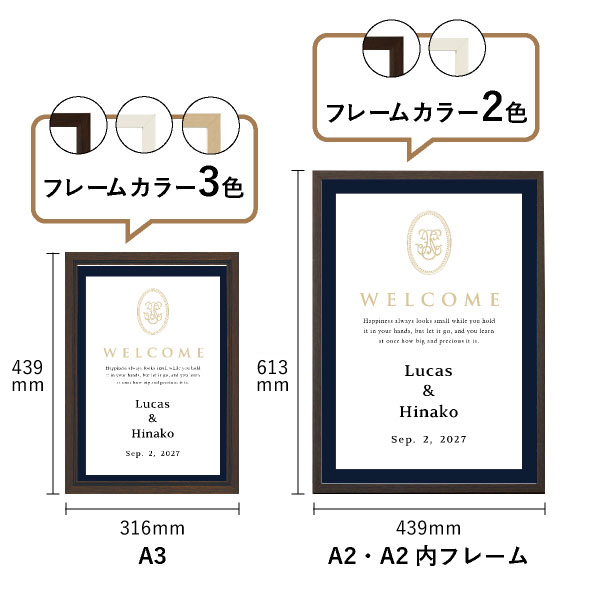 A3・A2・A2内フレームのフレームからお選びいただけます。