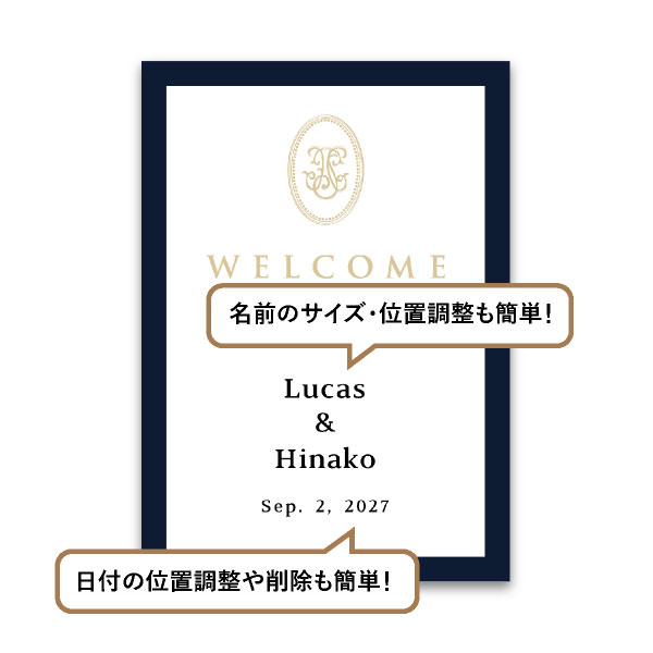 グラフィック ウェルカムボード(ロシェル ゴールドネイビー)|ウェルカムボードならPIARY(ピアリー)