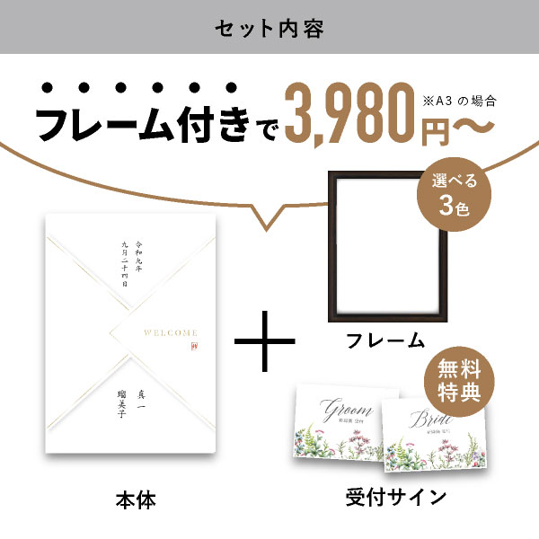 | 無料特典 | 受付サイン1組(新郎用×1組、新婦用×1組) |