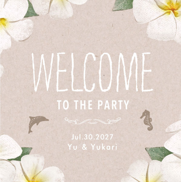 女性らしくしとやかなプルメリアは女性の魅力を引き出す力があるとされています。 ハワイ語で「プルメリア」は「Pua melia (プアメリア)」と読みます。 「大切な人の幸せを願う」という意味があります。ゲストにウェルカムボードを通して「幸せを願っています」というメッセージをお届け!南国の海や白い砂浜をイメージさせるふだんは味わえない非日常感たっぷりの時間が過ごせるリゾートウェディングにぴったりの一枚です。