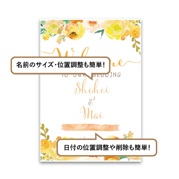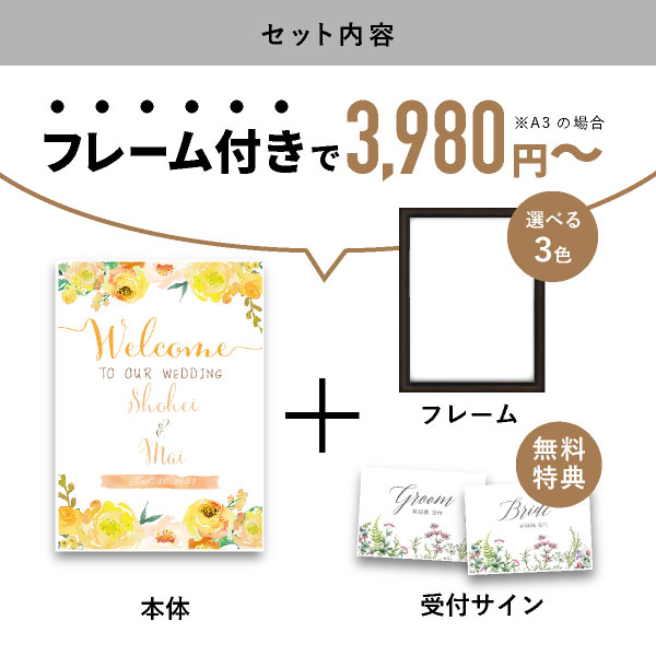 | 無料特典 | 受付サイン1組(新郎用×1組、新婦用×1組) |