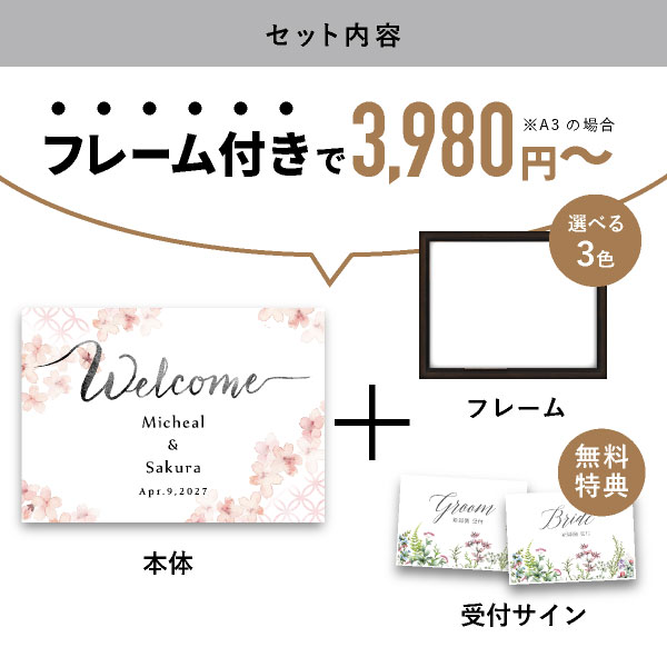 | 無料特典 | 受付サイン1組(新郎用×1組、新婦用×1組) |