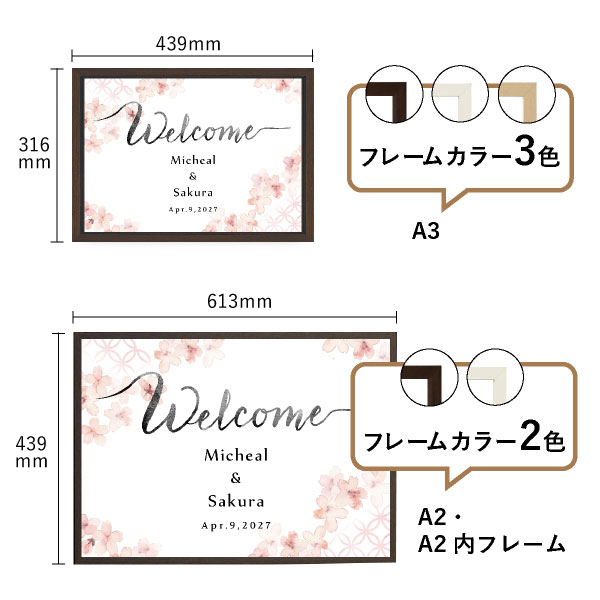 | 内容物 | グラフィック ウェルカムボード ■フレーム付き(A3サイズは3種類よりお選びいただけます。A2サイズは2種類よりお選びいただけます。) |