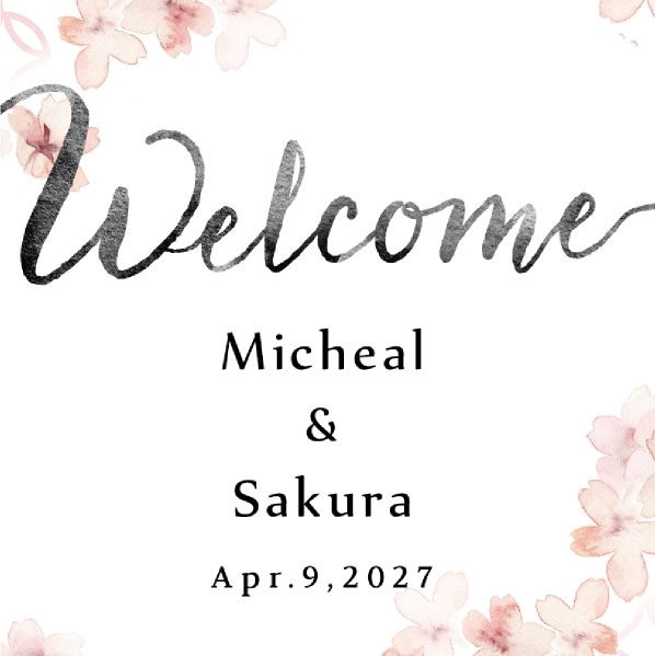 桜の花言葉は「精神の美」「優雅な女性」と花嫁さまにはぴったりなウェルカムボード。春の花、桜のデザインが淡くあしらわれた、どこかはかなさを感じる可憐な仕上がりに。春の結婚式に上品さをプラスしてくれる一枚です。