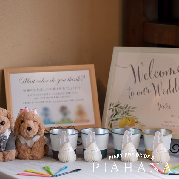 おしゃれなデザインのウェルカムボードは、おふたりの代わりにゲストをお出迎えするアイテムとしてウェルカムスペースの定番アイテム。PIARYのウェルカムボードはデザインも豊富で、デザイン調整も自分たちでできて大人気です。