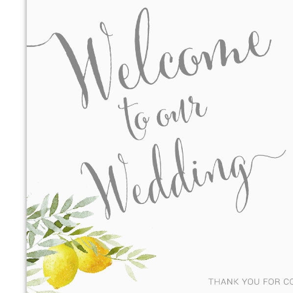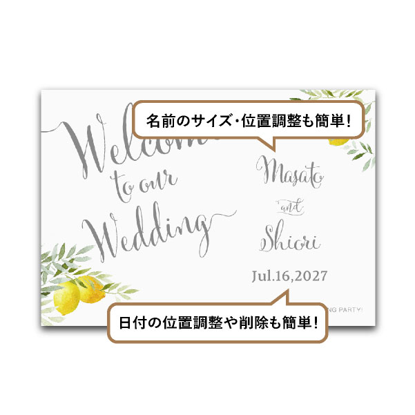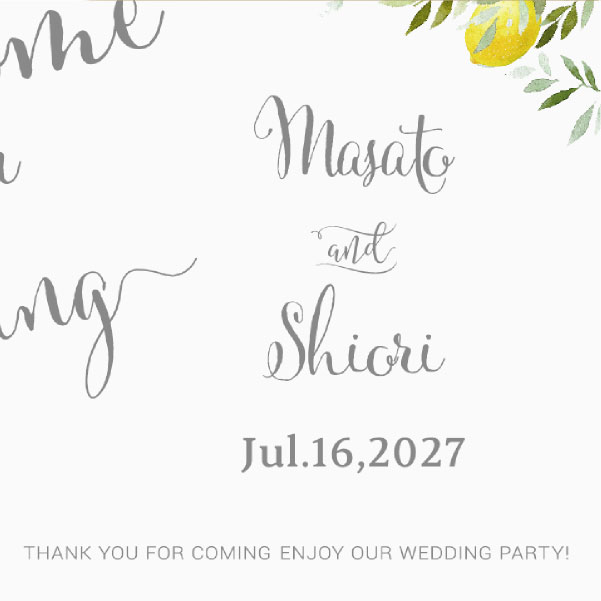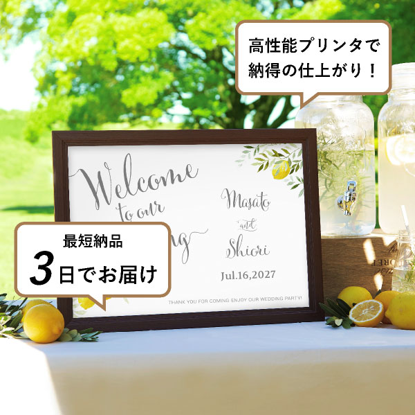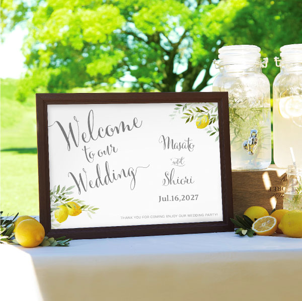 レモンから感じるさわやかさがまるでおふたりの人柄を感じるデザインのウェルカムボード。ガーデンやナチュラルウェディングにおすすめな一枚。