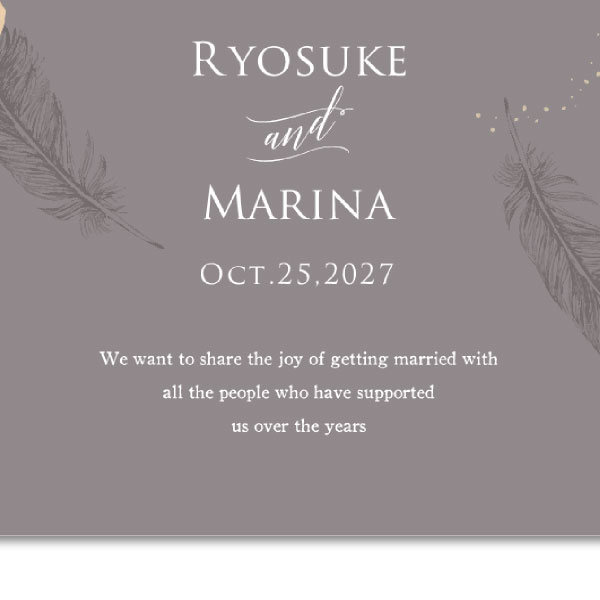 ふたりの旅立ちを祝福するかのように、繊細かつ上品に描かれたフェザーで大人ウェディングを演出。