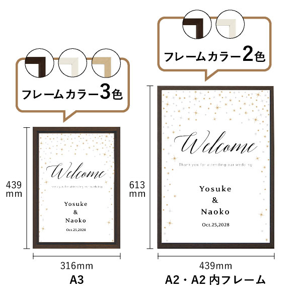 | 内容物 | グラフィック ウェルカムボード ■フレーム付き(A3サイズは3種類よりお選びいただけます。A2サイズは2種類よりお選びいただけます。) |