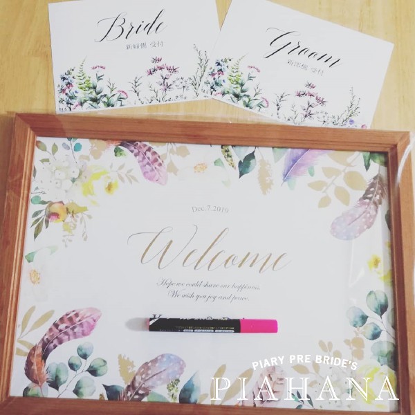 おしゃれなデザインのウェルカムボードは、おふたりの代わりにゲストをお出迎えするアイテムとしてウェルカムスペースの定番アイテム。PIARYのウェルカムボードはデザインも豊富で、デザイン調整も自分たちでできて大人気です。