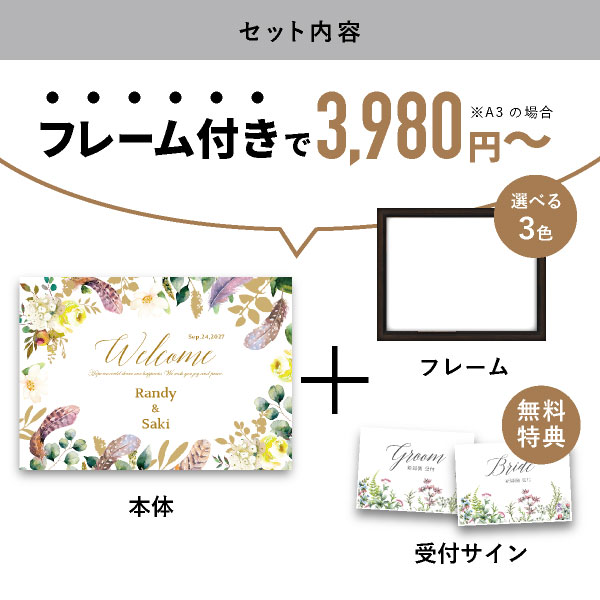 | 無料特典 | 受付サイン1組(新郎用×1組、新婦用×1組) |