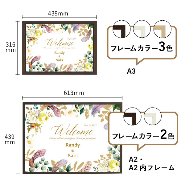 | 内容物 | グラフィック ウェルカムボード ■フレーム付き(A3サイズは3種類よりお選びいただけます。A2サイズは2種類よりお選びいただけます。) |