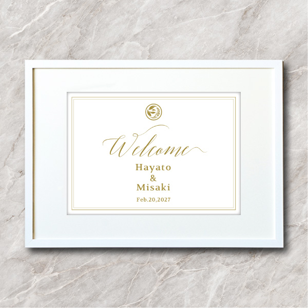 モダンでシンプルな白いベースデザイン、上質な雰囲気が重厚感を生み出してくれるウェルカムボードです。白にゴールドの文字で高級感のあるデザインで、洗練された和モダンな空間を演出してくれます。和モダンとは、古来からつたわる和風デザインと、洋風に近い現代的でスタイリッシュなテイストを融合させたデザインのことで、リラックス気分も味わうことができます。