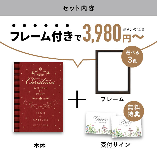 | 無料特典 | 受付サイン1組(新郎用×1組、新婦用×1組) |