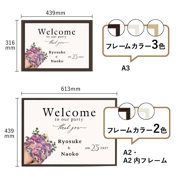 | 内容物 | グラフィック ウェルカムボード ■フレーム付き(A3サイズは3種類よりお選びいただけます。A2サイズは2種類よりお選びいただけます。) |