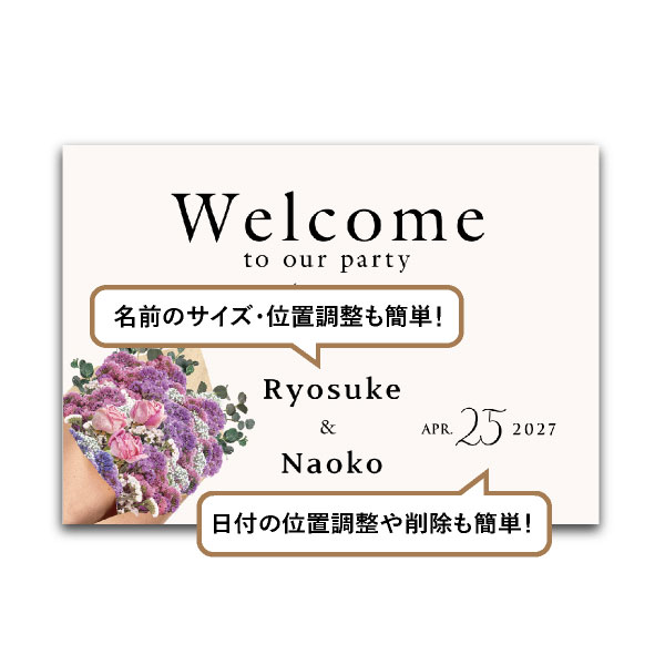 | 無料特典 | 受付サイン1組(新郎用×1組、新婦用×1組) |