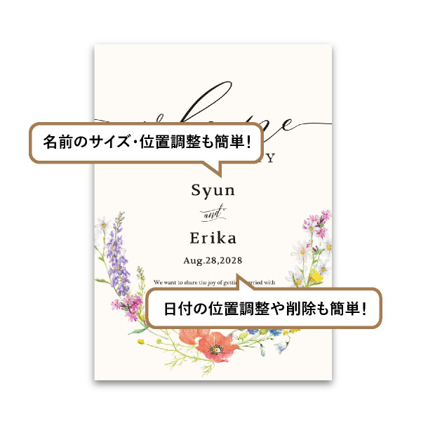 | 無料特典 | 受付サイン1組(新郎用×1組、新婦用×1組) |