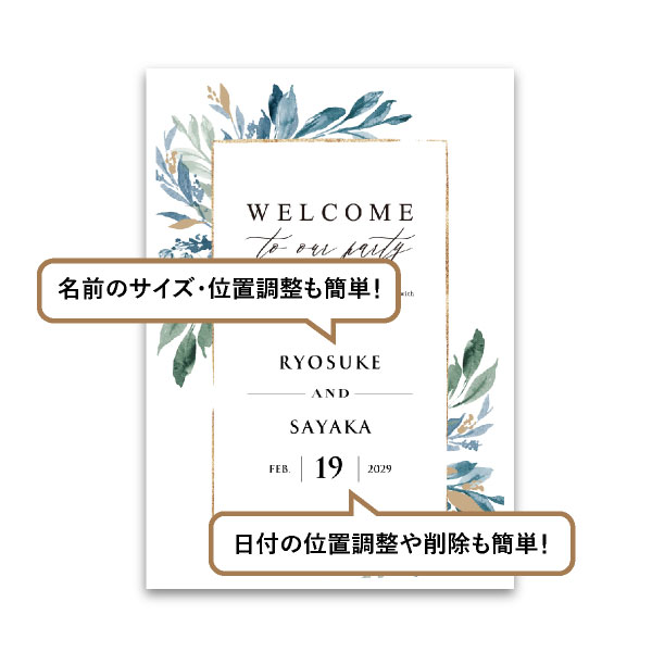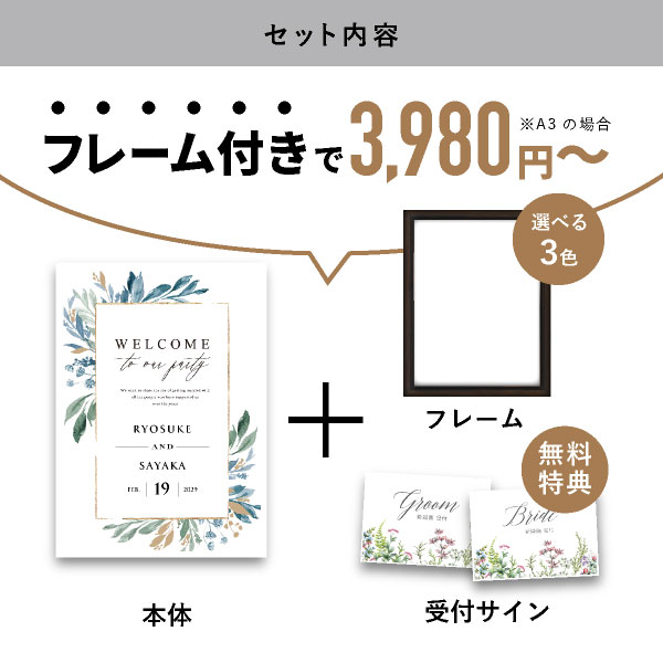 | 無料特典 | 受付サイン1組(新郎用×1組、新婦用×1組) |