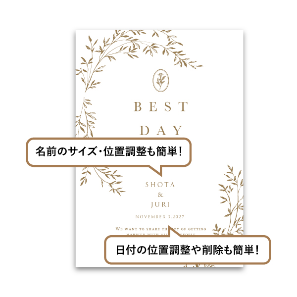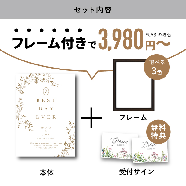 | 無料特典 | 受付サイン1組(新郎用×1組、新婦用×1組) |
