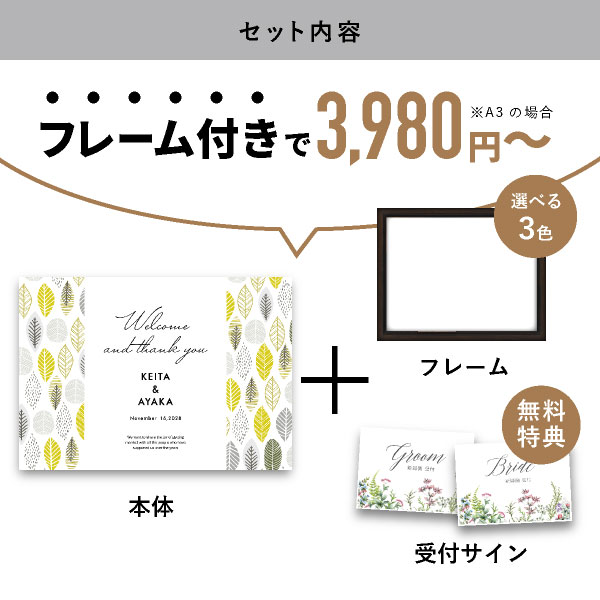 | 無料特典 | 受付サイン1組(新郎用×1組、新婦用×1組) |