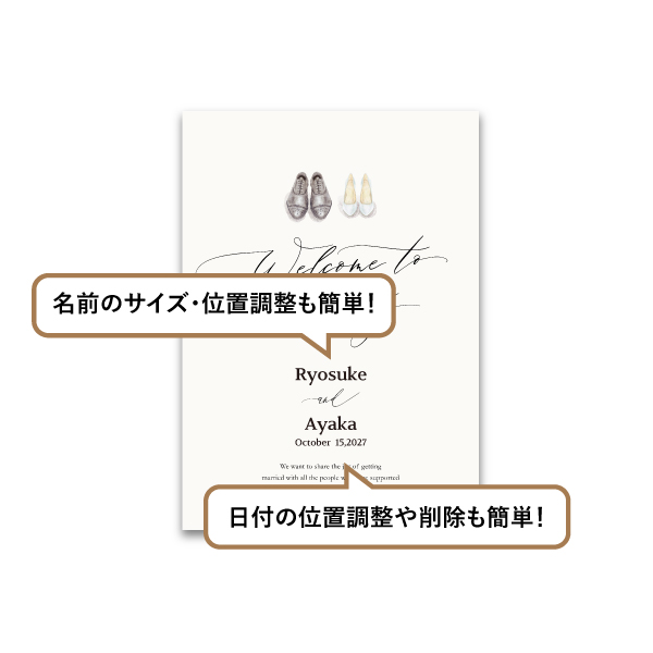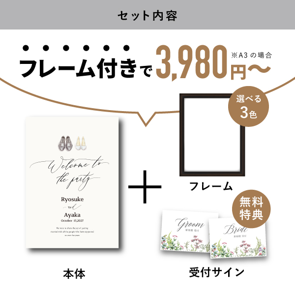 | 無料特典 | 受付サイン1組(新郎用×1組、新婦用×1組) |
