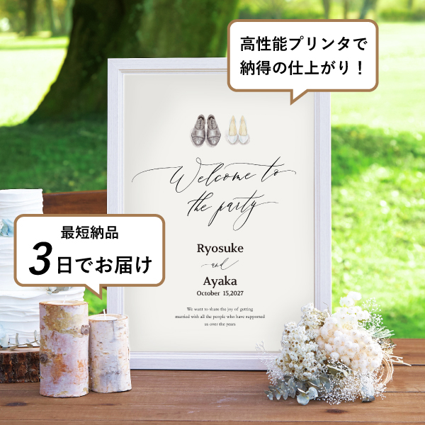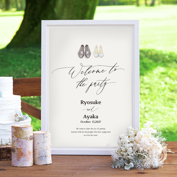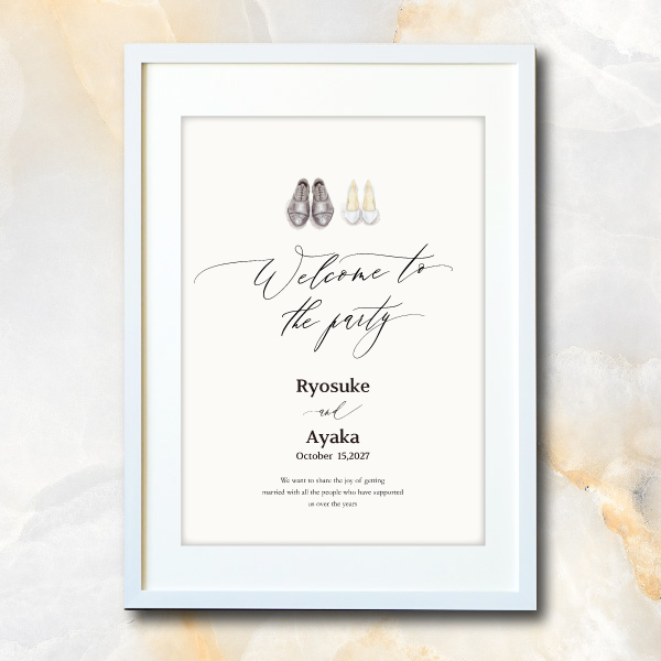 新郎さまと新婦さまが新しい人生を一緒に歩き出す、今日という大切な日にぴったりの一枚。シンプルに描かれたおふたりのシューズが、ウェディングの雰囲気をより一層演出してくれます。