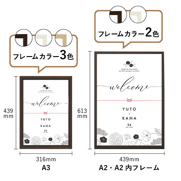 | 内容物 | グラフィック ウェルカムボード ■フレーム付き(A3サイズは3種類よりお選びいただけます。A2サイズは2種類よりお選びいただけます。) |