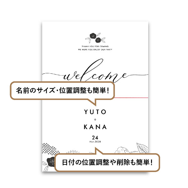 | 無料特典 | 受付サイン1組(新郎用×1組、新婦用×1組) |