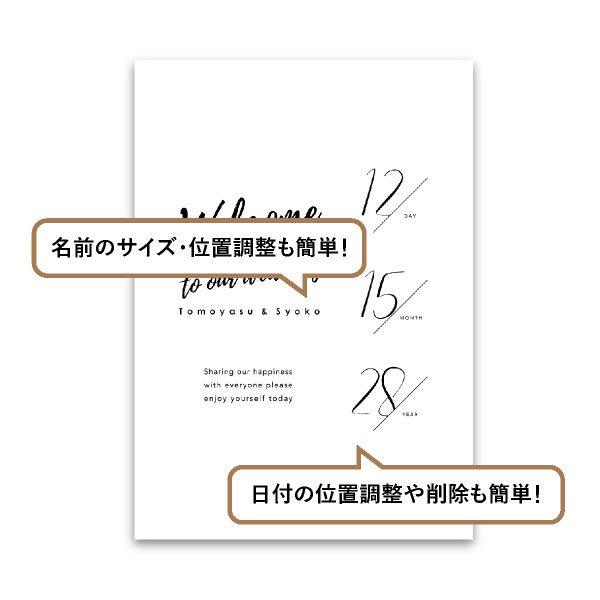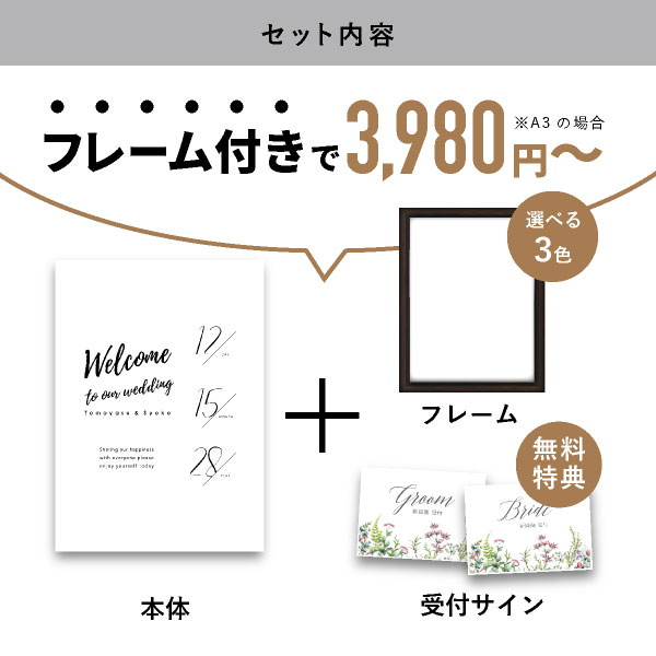 | 無料特典 | 受付サイン1組(新郎用×1組、新婦用×1組) |