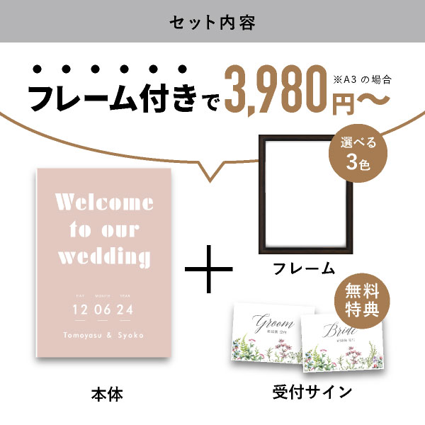 | 無料特典 | 受付サイン1組(新郎用×1組、新婦用×1組) |