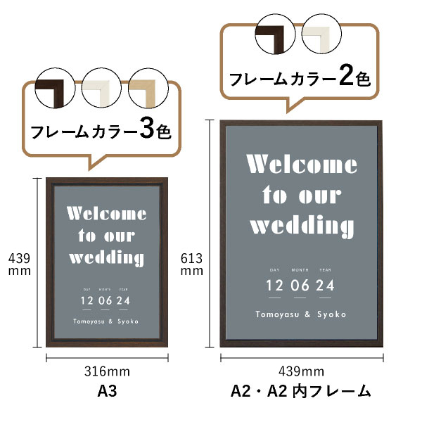 | 内容物 | グラフィック ウェルカムボード ■フレーム付き(A3サイズは3種類よりお選びいただけます。A2サイズは2種類よりお選びいただけます。) |