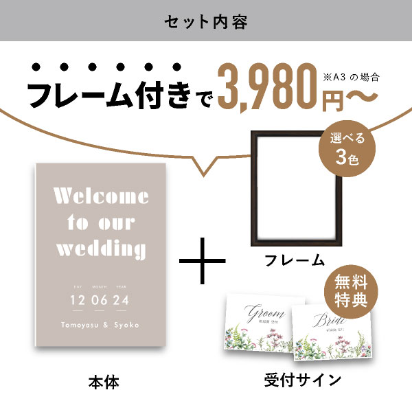 | 無料特典 | 受付サイン1組(新郎用×1組、新婦用×1組) |