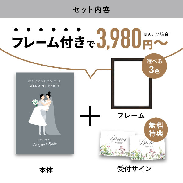 | 無料特典 | 受付サイン1組(新郎用×1組、新婦用×1組) |