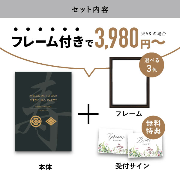 | 無料特典 | 受付サイン1組(新郎用×1組、新婦用×1組) |