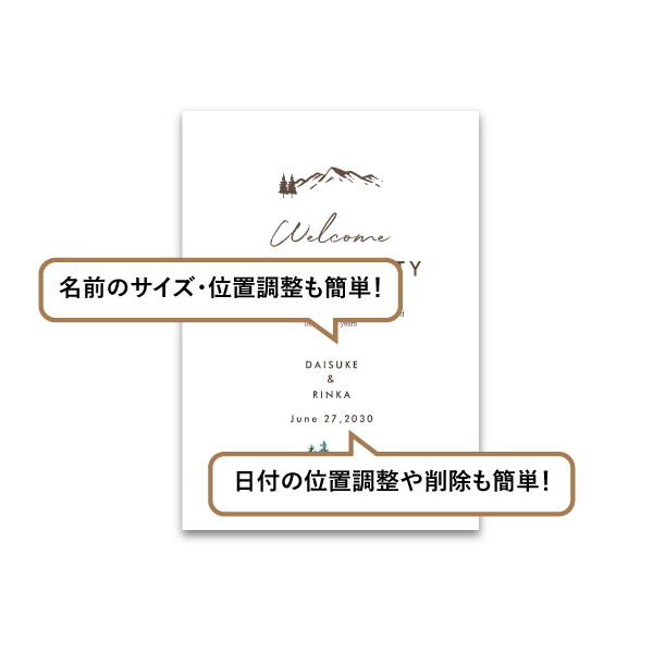 | 無料特典 | 受付サイン1組(新郎用×1組、新婦用×1組) |