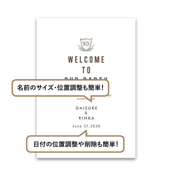 | 無料特典 | 受付サイン1組(新郎用×1組、新婦用×1組) |