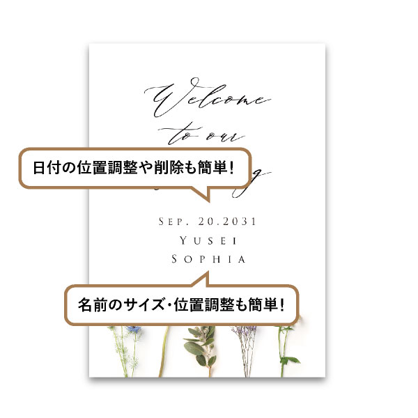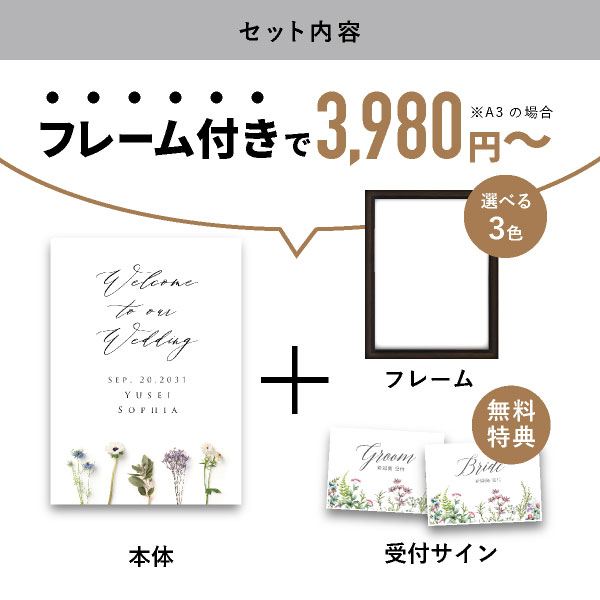 | 無料特典 | 受付サイン1組(新郎用×1組、新婦用×1組) |