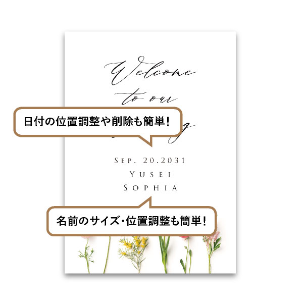 | 無料特典 | 受付サイン1組(新郎用×1組、新婦用×1組) |