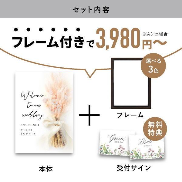 | 無料特典 | 受付サイン1組(新郎用×1組、新婦用×1組) |