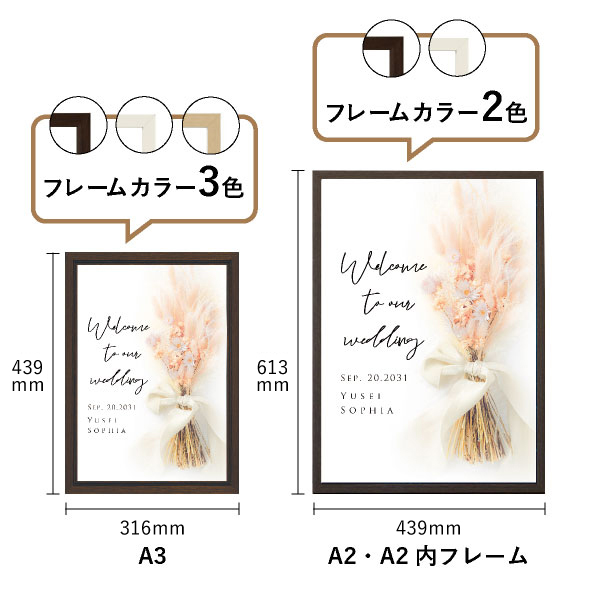 | 内容物 | グラフィック ウェルカムボード ■フレーム付き(A3サイズは3種類よりお選びいただけます。A2サイズは2種類よりお選びいただけます。) |