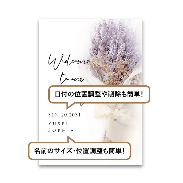 | 無料特典 | 受付サイン1組(新郎用×1組、新婦用×1組) |