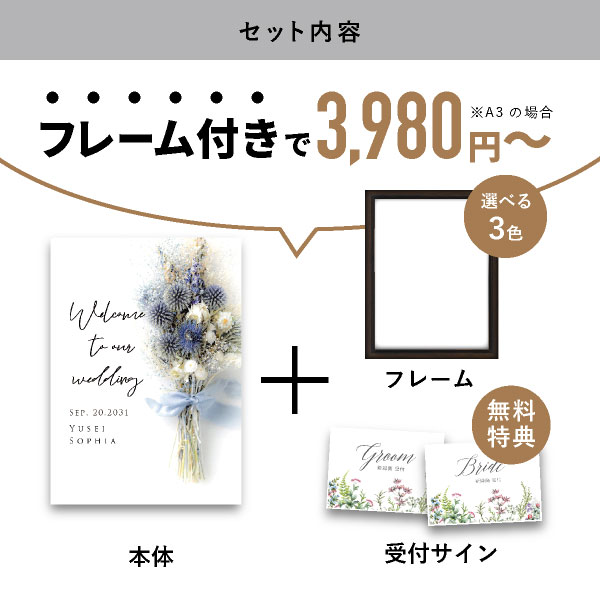 | 無料特典 | 受付サイン1組(新郎用×1組、新婦用×1組) |