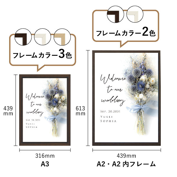 | 内容物 | グラフィック ウェルカムボード ■フレーム付き(A3サイズは3種類よりお選びいただけます。A2サイズは2種類よりお選びいただけます。) |