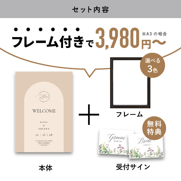 | 無料特典 | 受付サイン1組(新郎用×1組、新婦用×1組) |