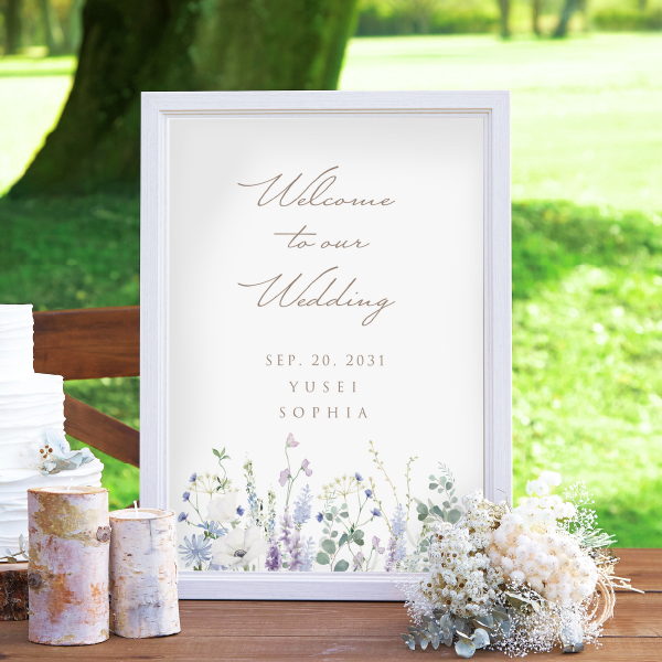 おしゃれなデザインのウェルカムボードは、おふたりの代わりにゲストをお出迎えするウェルカムスペースの定番アイテム。PIARYのウェルカムボードはデザインも豊富で、デザイン調整も自分たちでできて大人気です。