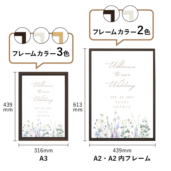 | 内容物 | グラフィック ウェルカムボード ■フレーム付き(A3サイズは3種類よりお選びいただけます。A2サイズは2種類よりお選びいただけます。) |
