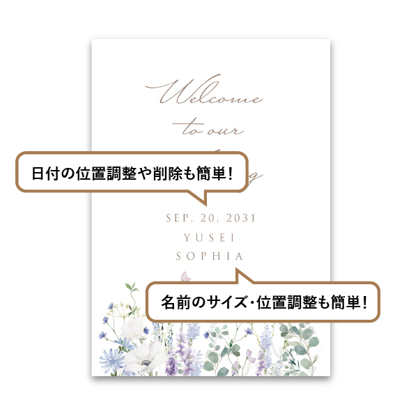 | 無料特典 | 受付サイン1組(新郎用×1組、新婦用×1組) |