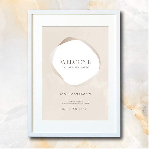 みずみずしいベージュのウォーターカラーがゲストを魅了するウェルカムボード。艶っぽさと自然な立体感は、まるでコスメのような大人の色気を感じるデザインです。透明感のある上品なシアースタイルは、ハイレベルのウェディングに◎