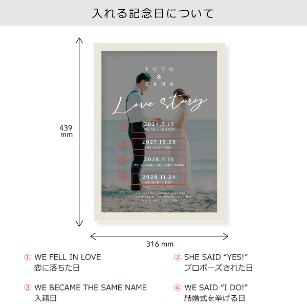 | 内容物 | ラブストーリーボード フレームつき(3種類よりお選びいただけます。) |