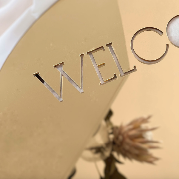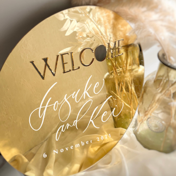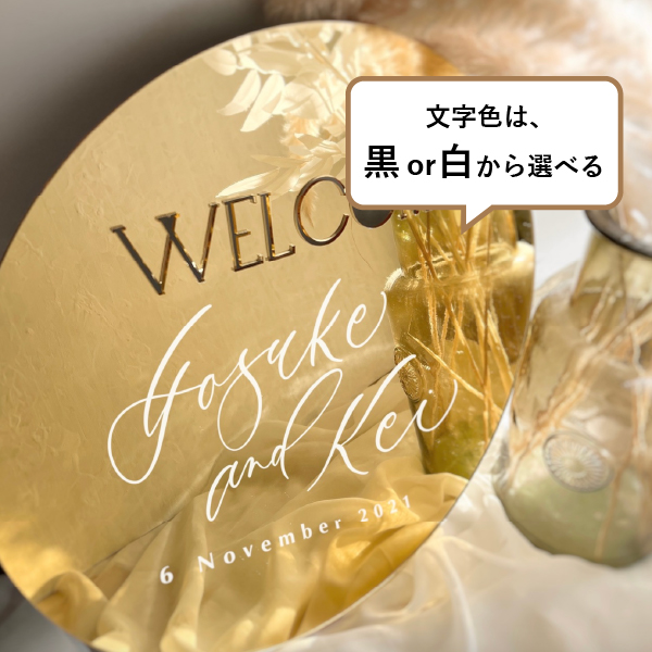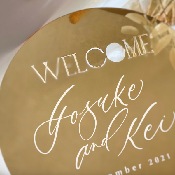 ウェルカムミラー (ラウンドゴールド/切り文字)|ウェルカムボードならPIARY(ピアリー)