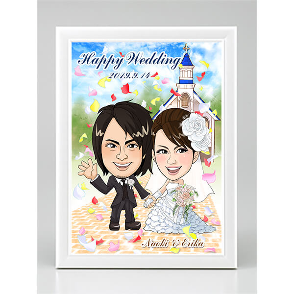CG似顔絵ウェルカムボード2nd フラワーシャワー|ウェルカムボードならPIARY(ピアリー)